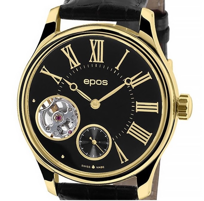 Механизм часов декорирован гравировкой и винтами из вороненой стали. Сквозь прозрачное окошко на циферблате можно наблюдать за работой механизма часов. Секундная стрелка вынесена на отдельный циферблат. Прозрачная задняя крышка.