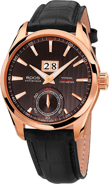 Центральные часовая и минутная стрелки, маленькая секундная на «6 часах».