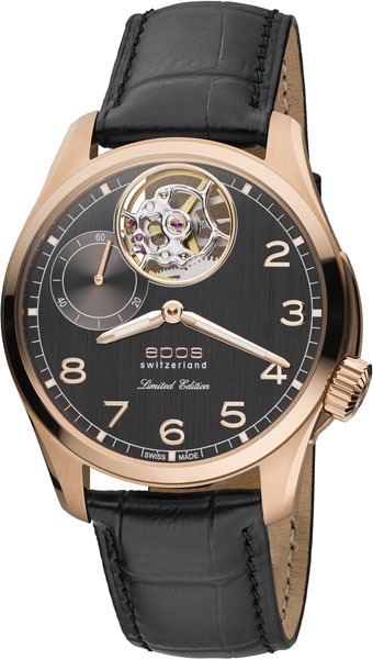 Лимитированная серия - 999 экземпляров. Секундная стрелка вынесена на отдельный циферблат. Сквозь прозрачное окошко на циферблате можно наблюдать за работой механизма часов. Прозрачная минеральная задняя крышка.