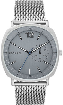 У мужских часов Skagen SKW6255 корпус и браслет изготовлены из нержавеющей стали, часы имеют кварцевый механизм, точность хода +/- 20 сек. за месяц, модель оснащена крепким минеральным (кварцевым) стеклом, поцарапать такое стекло очень не просто (оно имеет значение 7 по шкале Мооса - шкала минералогической твёрдости), ещё одним достоинством минеральных стёкол является прочность, расколоть такое стекло гораздо сложнее чем сапфировое, именно поэтому этот вид стёкол - самый распространённый в часовой индустрии, часы обладают классом водозащиты 5 атмосфер (50м по другой классификации), часы с такой водонепроницаемостью не подходят для плавания, в них можно лишь помыть руки или сходить в душ, в часах присутствует календарь.